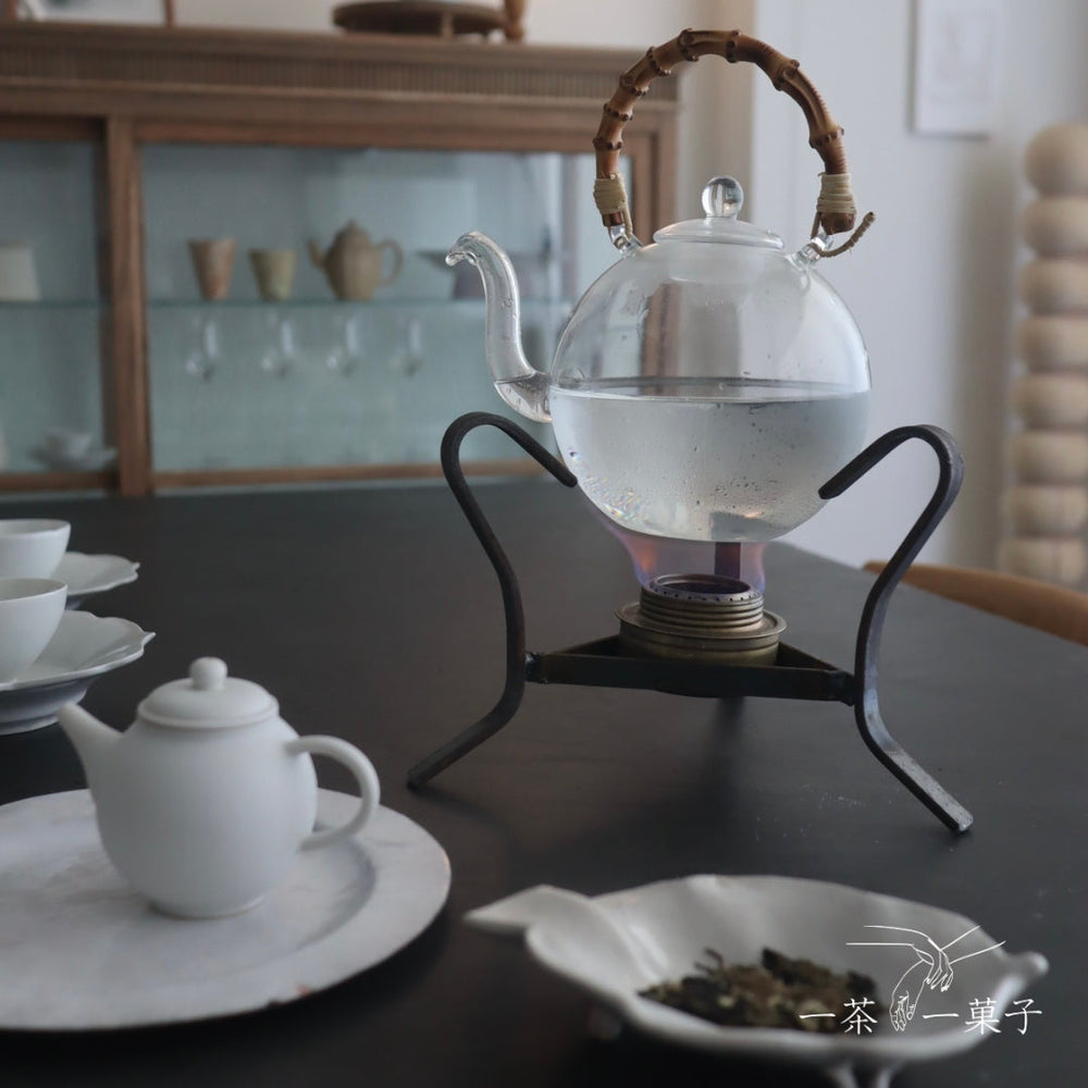 アルコールランプの火でお湯が沸騰したら、砕いた普洱餅茶を茶壺に入れます。熱湯を注ぐと、立ち上る蒸気から華やかな香りが漂い、食欲を刺激してくれます。