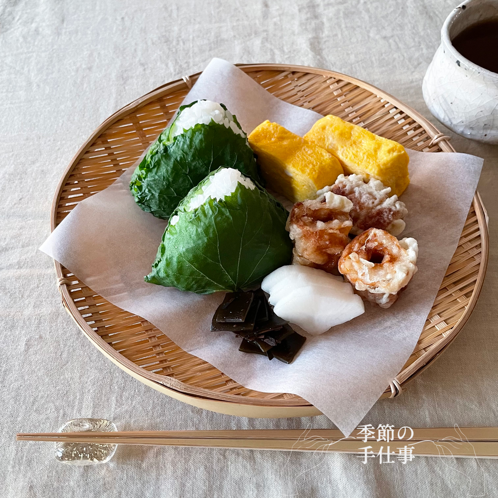 旬の食材:蕗の若葉で包むおにぎり~季節の塩漬け~