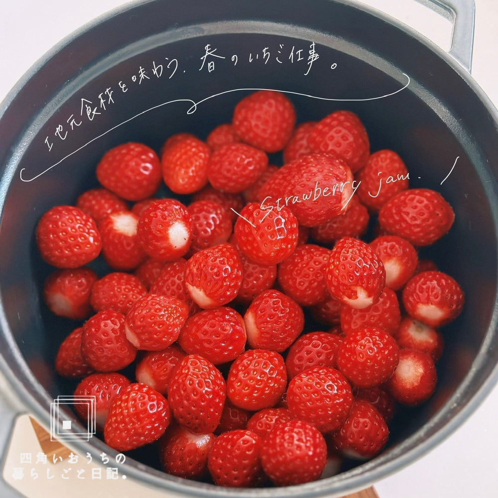 いちごのシーズンが終わってもこのいちごを長く美味しく味わえるように、瓶の中に旬を閉じ込めます♪