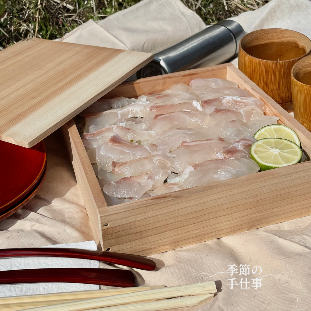 昆布締めにした鯛と酢飯を用意し
