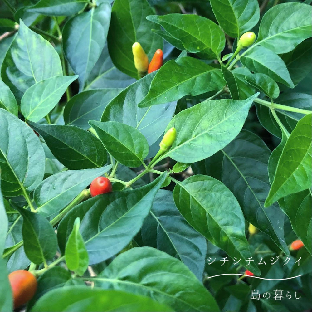 最近めっきり涼しくなり(とは言っても20℃は越えているのですが)、西表島にも秋がやってきました。庭の畑の島唐辛子も高さ1メートルほどの大きさに生い茂り、一斉にたくさんの島唐辛子の実をつけてくれています。