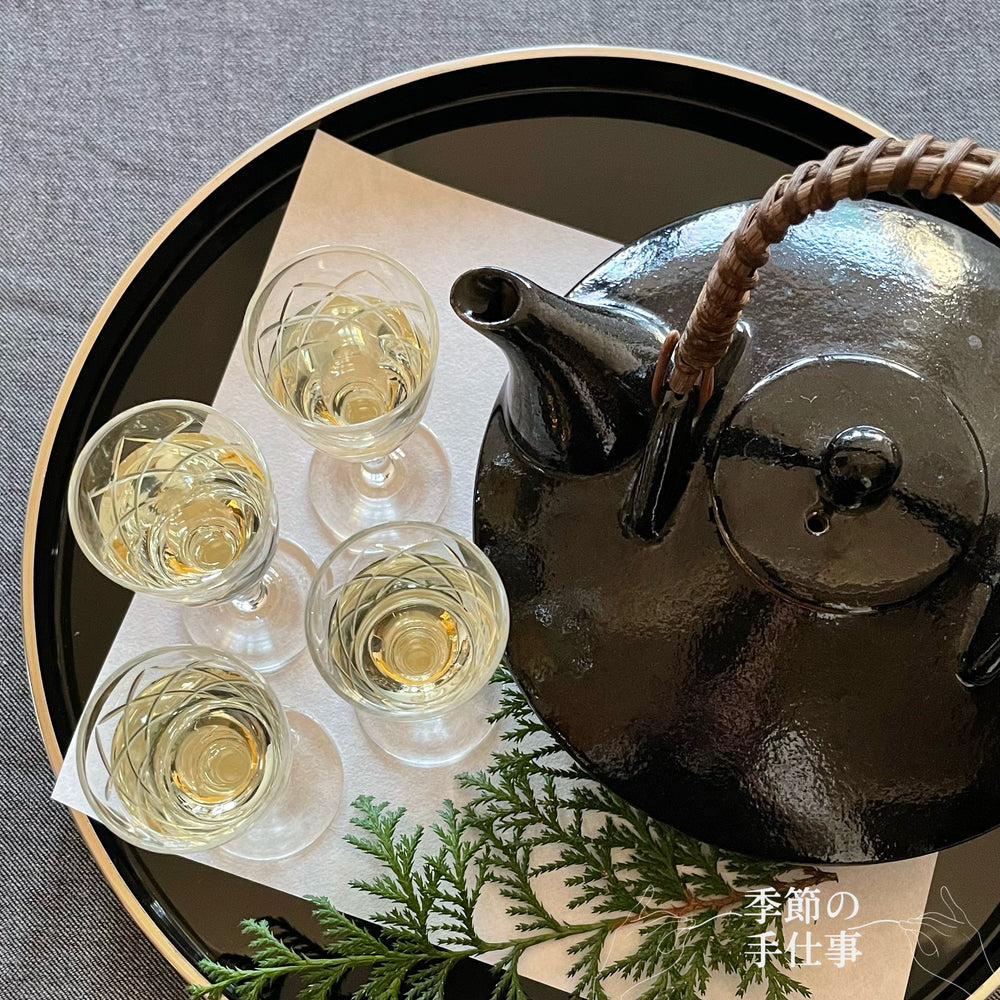 それから、お屠蘇を元日の朝ではなく、夜に飲むことで「おめでたい」というイメージを押さえることが出来るので、喪中の方も邪気払いの意味で頂くと良いそうです。その時は、雅な屠蘇器ではなく、写真のように黒じょかや普段使いの酒器などが良いですね。