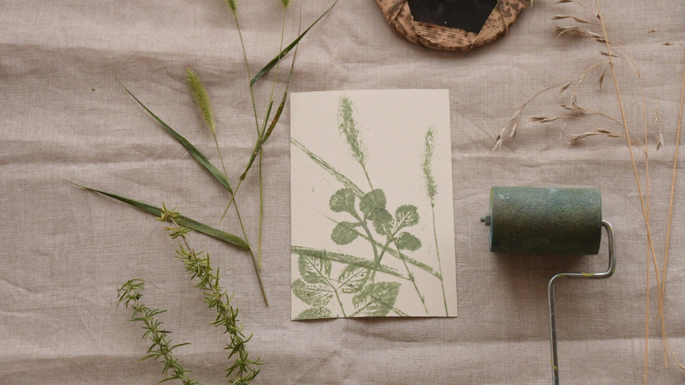 色々な質感の草たちを、自由に組み合わせて版画のカードを仕立てて、花を活けるように、壁に掛けておくのもいいです。