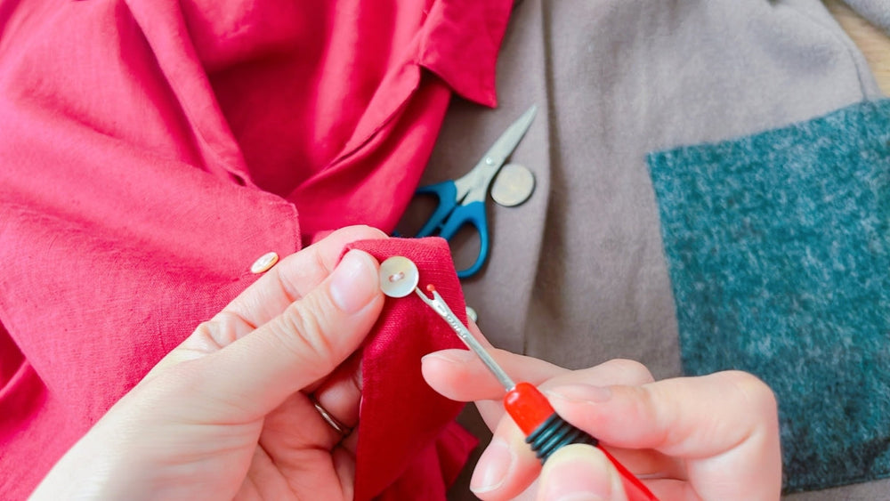 リッパーなどで丁寧に糸を取り除き、ボタンを外します。