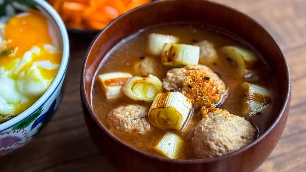 ∟ 焼いた長ねぎと豚だんごのお味噌汁