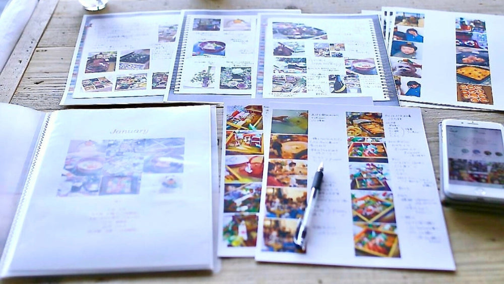 一月のページには写真も添えて、よりわかりやすく。気づけばそこに家族が写り込み、歴史のようにもなっていました。特別なことを意識しなくても、このファイルたちのおかげで、一年の流れが大まかに見えてきます。