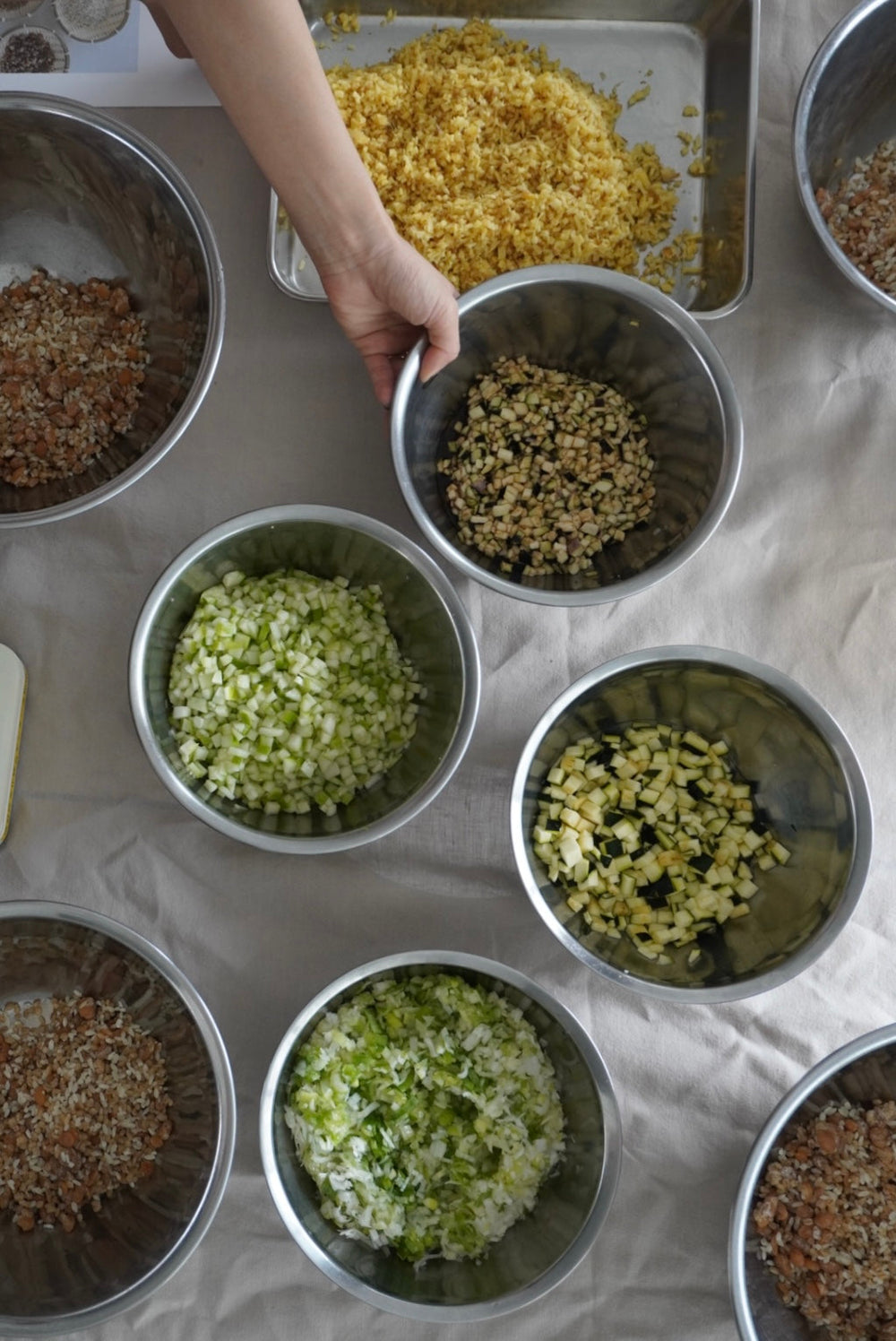 金山寺味噌と金山寺麹についての座学から始まり、理解を深めた後は、皆様手分けして有機野菜のみじん切りからスタート!