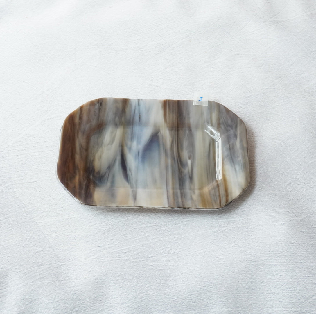 天気雨さんのガラス作品は、まるで曇り空の隙間から差し込むやわらかな光のように、心に静かな温もりを届けてくれます。淡く溶け合う色合いや、パキッとした色と透明感は、ふとした瞬間に小さな幸せを見つけるような、穏やかな空間を感じさせてくれます。
