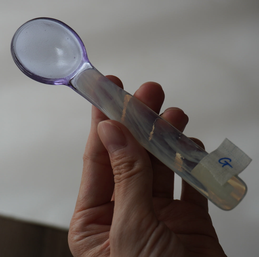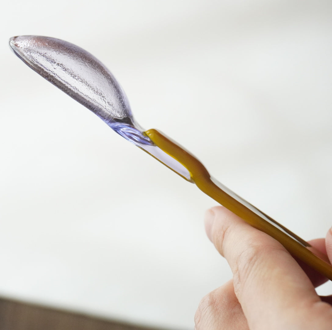 天気雨さんのガラス作品は、まるで曇り空の隙間から差し込むやわらかな光のように、心に静かな温もりを届けてくれます。淡く溶け合う色合いや、パキッとした色と透明感は、ふとした瞬間に小さな幸せを見つけるような、穏やかな空間を感じさせてくれます。